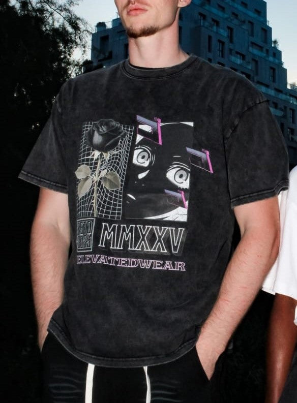"MMXXV" Acid Wash Oversize T-Shirt - 250 GSM | ELEVATEDWEAR